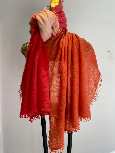 Our Cashmere Two Tone Shawl combines luxury, comfort, and style. A generous size providing ample coverage, allowing you to drape it gracefully over your shoulders or as a wrap.