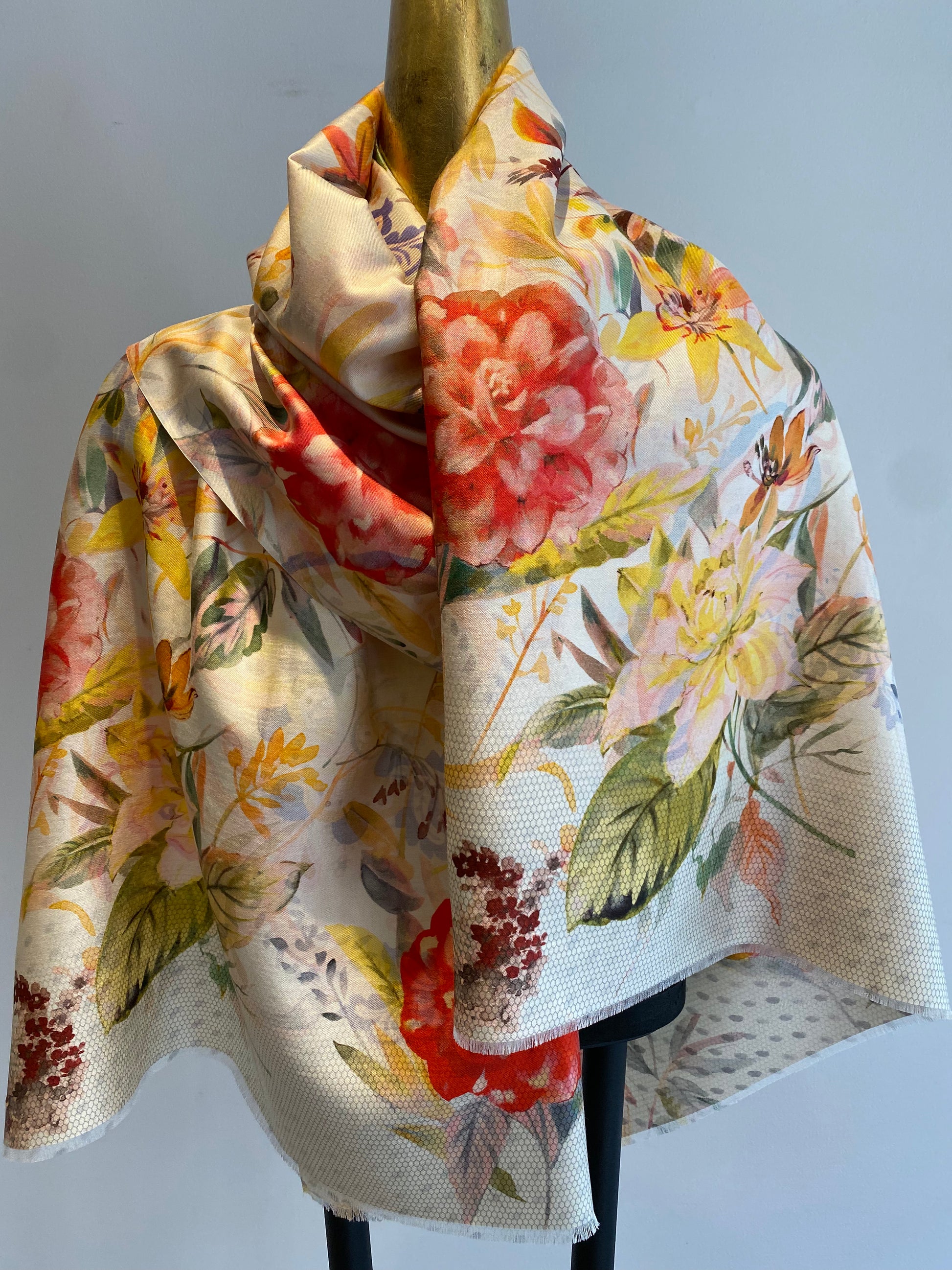 Embrace the allure of luxurious style with our Fall Printed Silk Scarf – the perfect gift for yourself or a loved one who appreciates the finer things in life. This beautiful scarf offers ample coverage to showcase its stunning design.