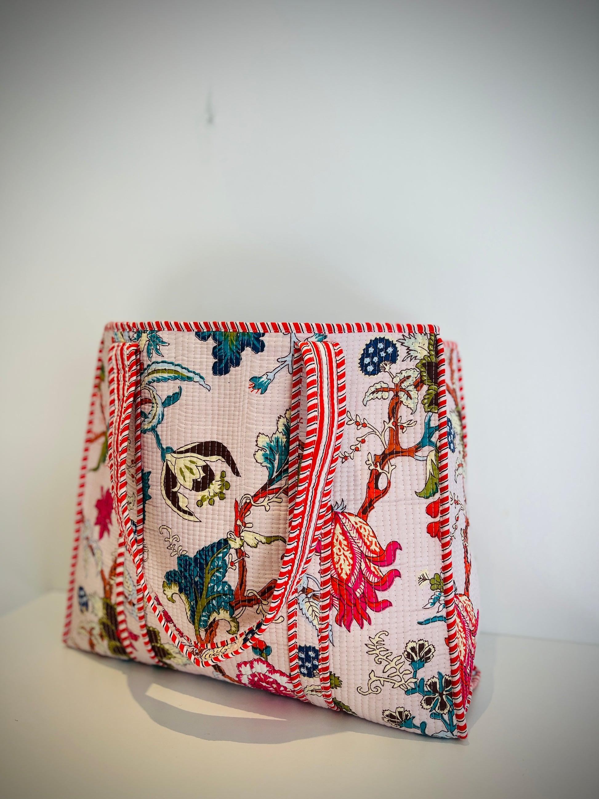 Crafted with care, our Block Print Tote features intricate hand-blocked designs that showcase the artistry and craftsmanship of skilled artisans. Each bag is a unique piece of art, making it a truly special accessory to add to your collection. The generous size of 45 cm x 45 cm provides ample space to carry all your essentials.