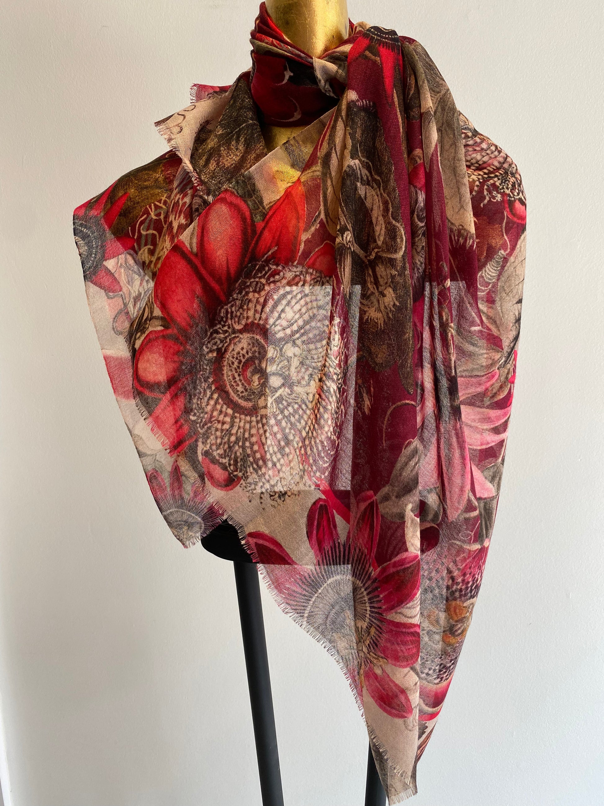 Product DescriptionEmbrace the beauty of our Floral Silk Wool Scarf's exquisite print, where artistry meets luxury. The intricate patterns dance gracefully across the silk wool blend fabric, creating a mesmerizing tapestry of colours and designs.